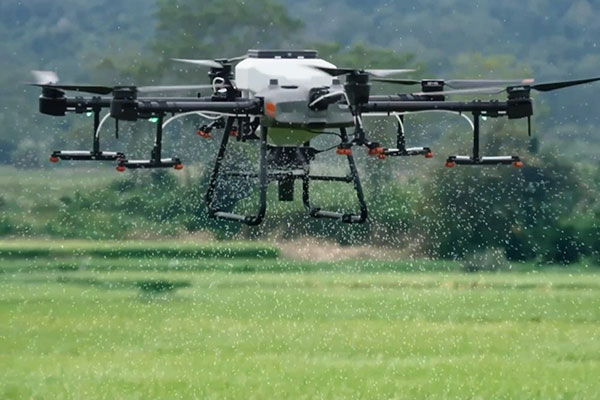 DJI AGRAS T30には16個の噴霧ノズルが搭載されており、均一に農薬を散布することができます。